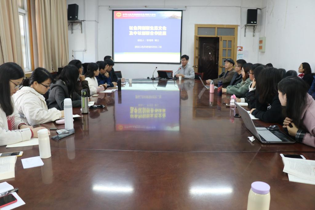 11月26日上午,原中国驻以色列大使馆秘书李鸿炜博士到访历史文化学院,并在学院三楼报告厅做了题为《以色列创新生态文化及中以创新合作进展》的讲座,讲座由历史文化学院常务副院长张礼刚教授主持。