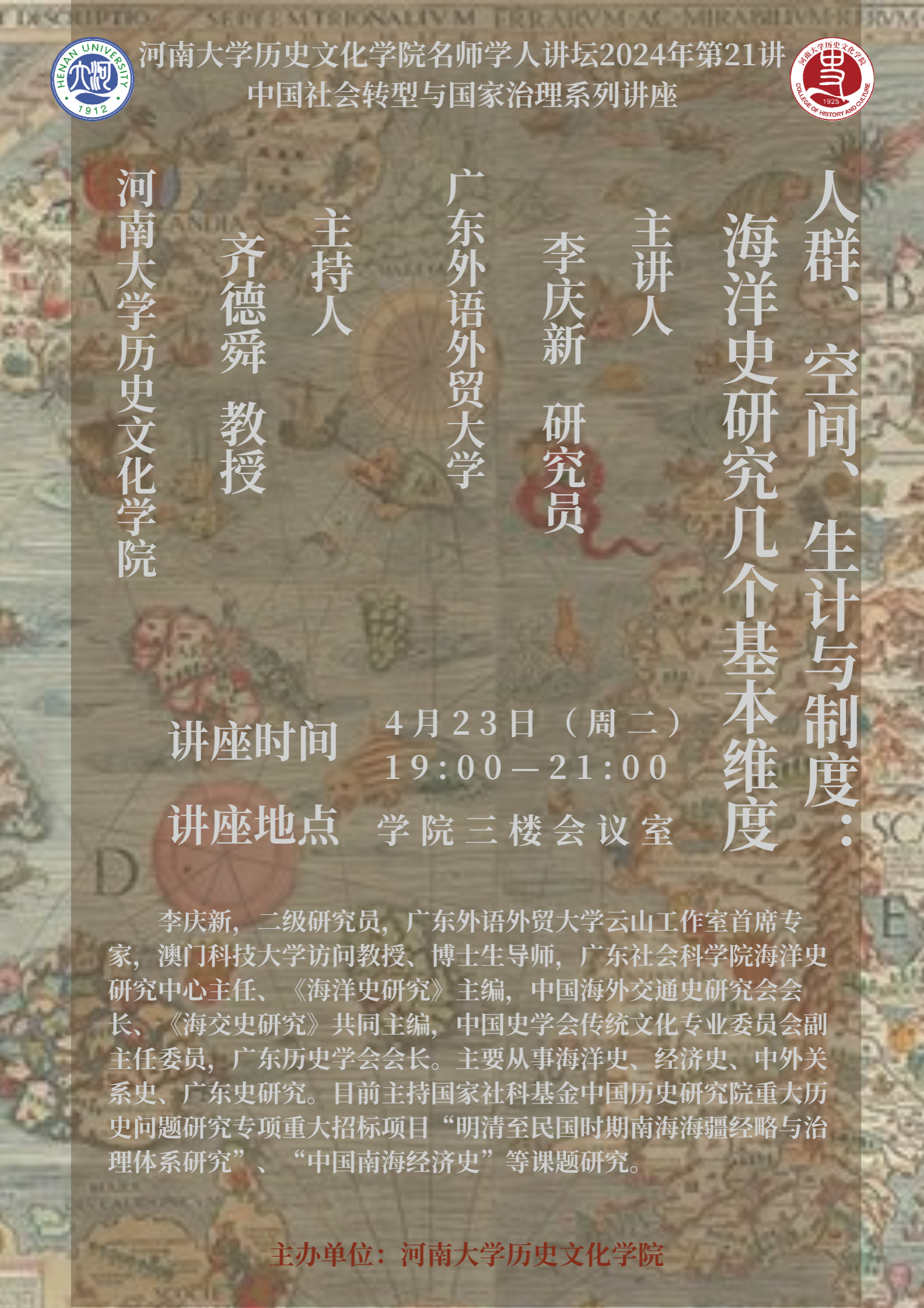 上一篇:【讲座通知】李庆新:人群、空间、生计与制度:海洋史研究几个基本维度