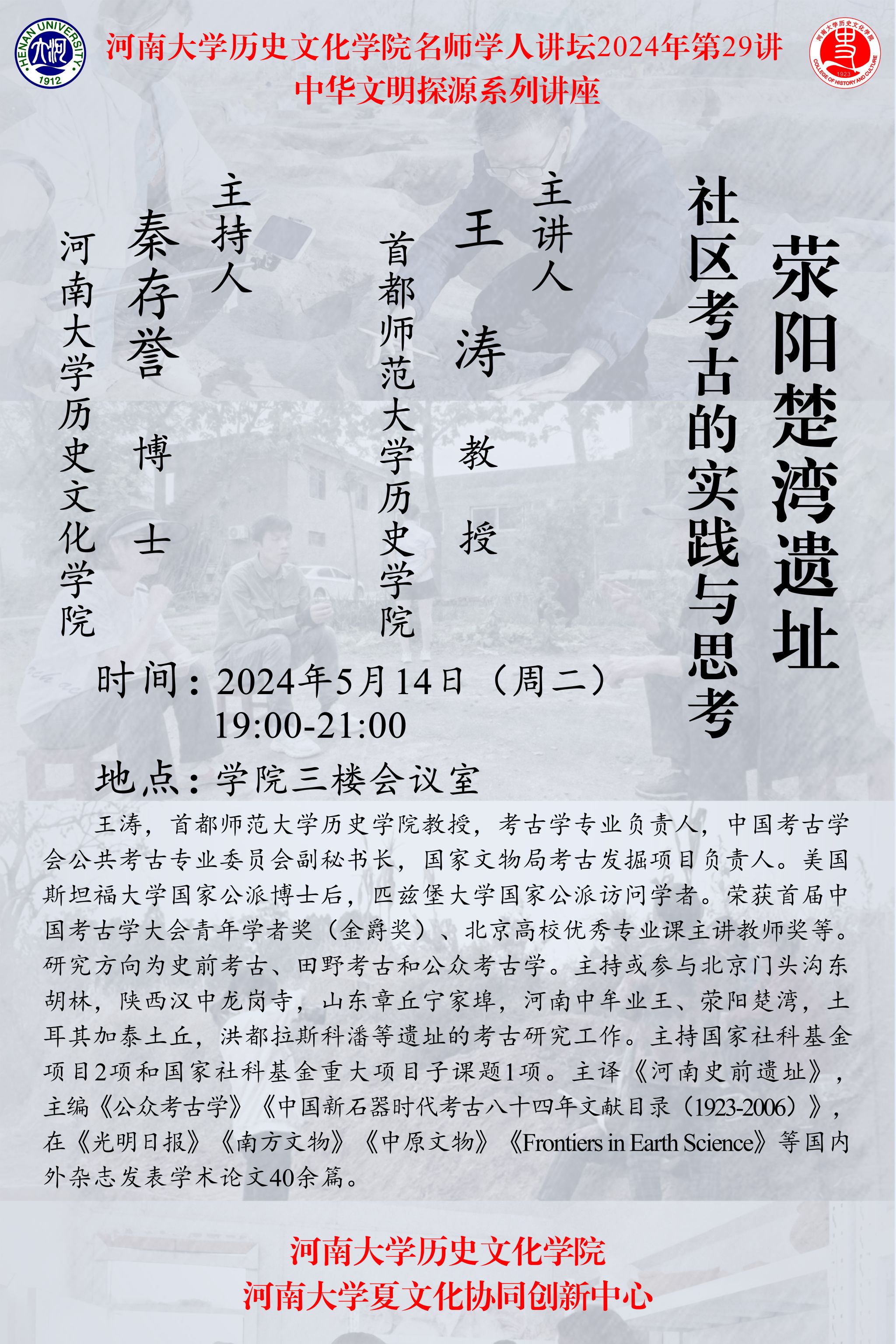 【讲座通知】王涛:荥阳楚湾遗址社区考古的实践与思考