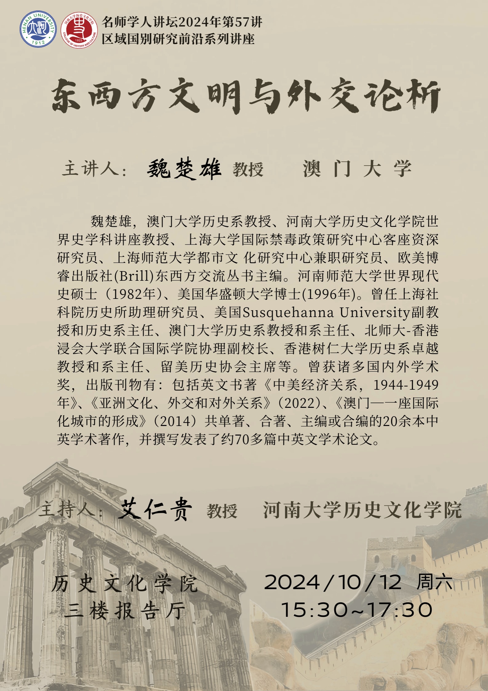 【讲座通知】魏楚雄:东西方文明与外交论析