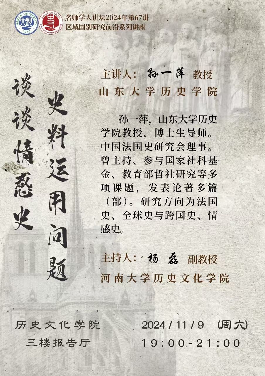 【讲座预告】孙一萍:谈谈情感史史料运用问题