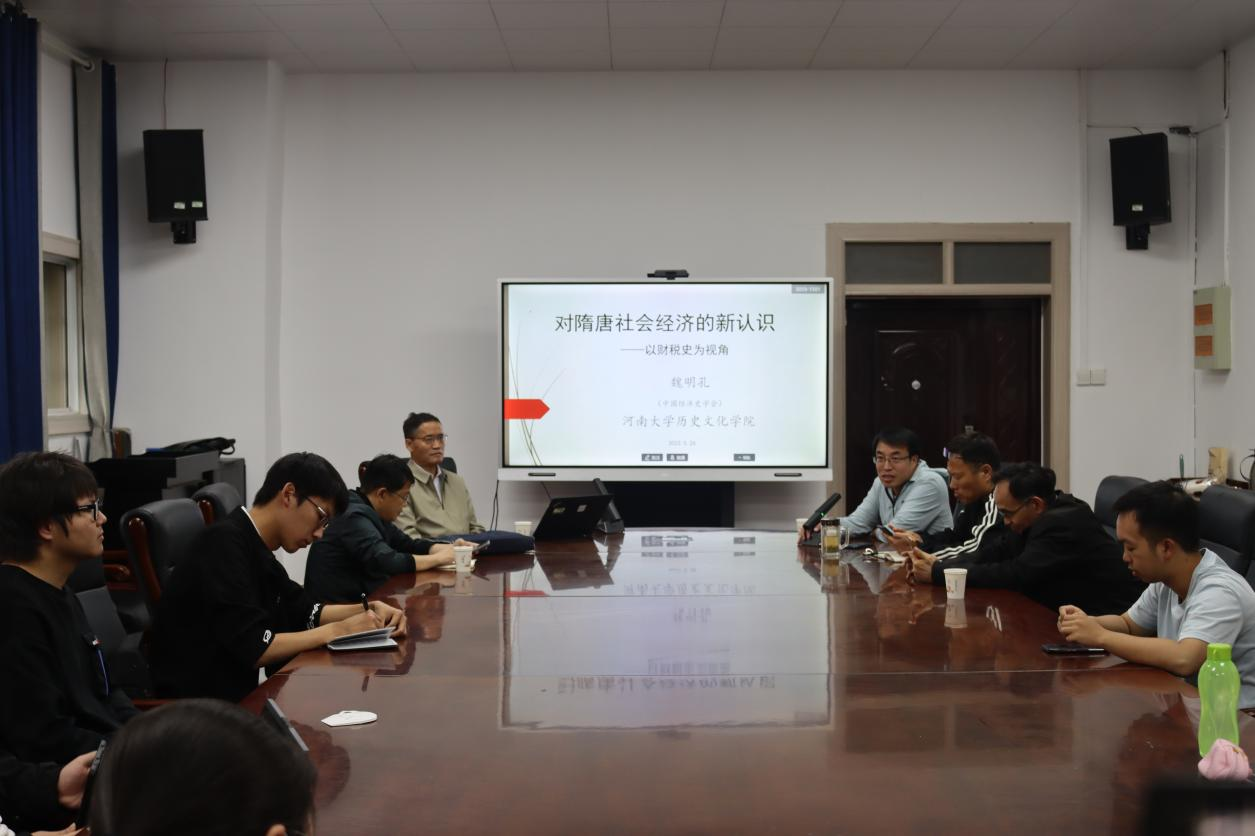 2023年5月26日上午,中国社会科学院经济研究所研究员、博士生导师魏明孔应邀在历史文化学院三楼会议室做题为《对隋唐经济的新认识》的讲座。本场讲座由河南大学历史文化学院院长、教授祁琛云主持。