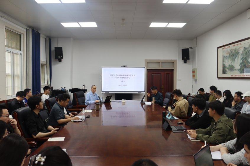 2024年5月6日下午,复旦大学历史学系吴景平教授受邀在河南大学历史文化学院三楼会议室做题为《国民政府时期的金融政治化研究——以海外藏档为中心》的讲座。本场讲座由河南大学历史文化学院翁有为教授主持。