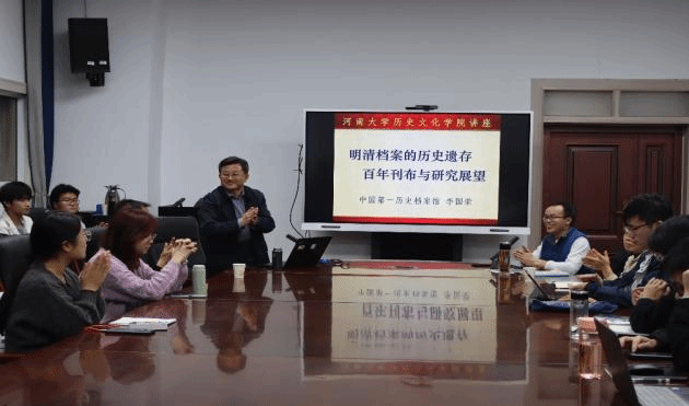2024年11月1日晚,中国第一历史档案馆原副馆长李国荣研究员受邀在历史文化学院三楼报告厅做题为《明清档案的历史遗存、百年刊布与研究展望》的讲座。来自河南省社会科学院的专家学者和历史文化学院师生到场聆听,历史文化学院柳岳武教授主持讲座。