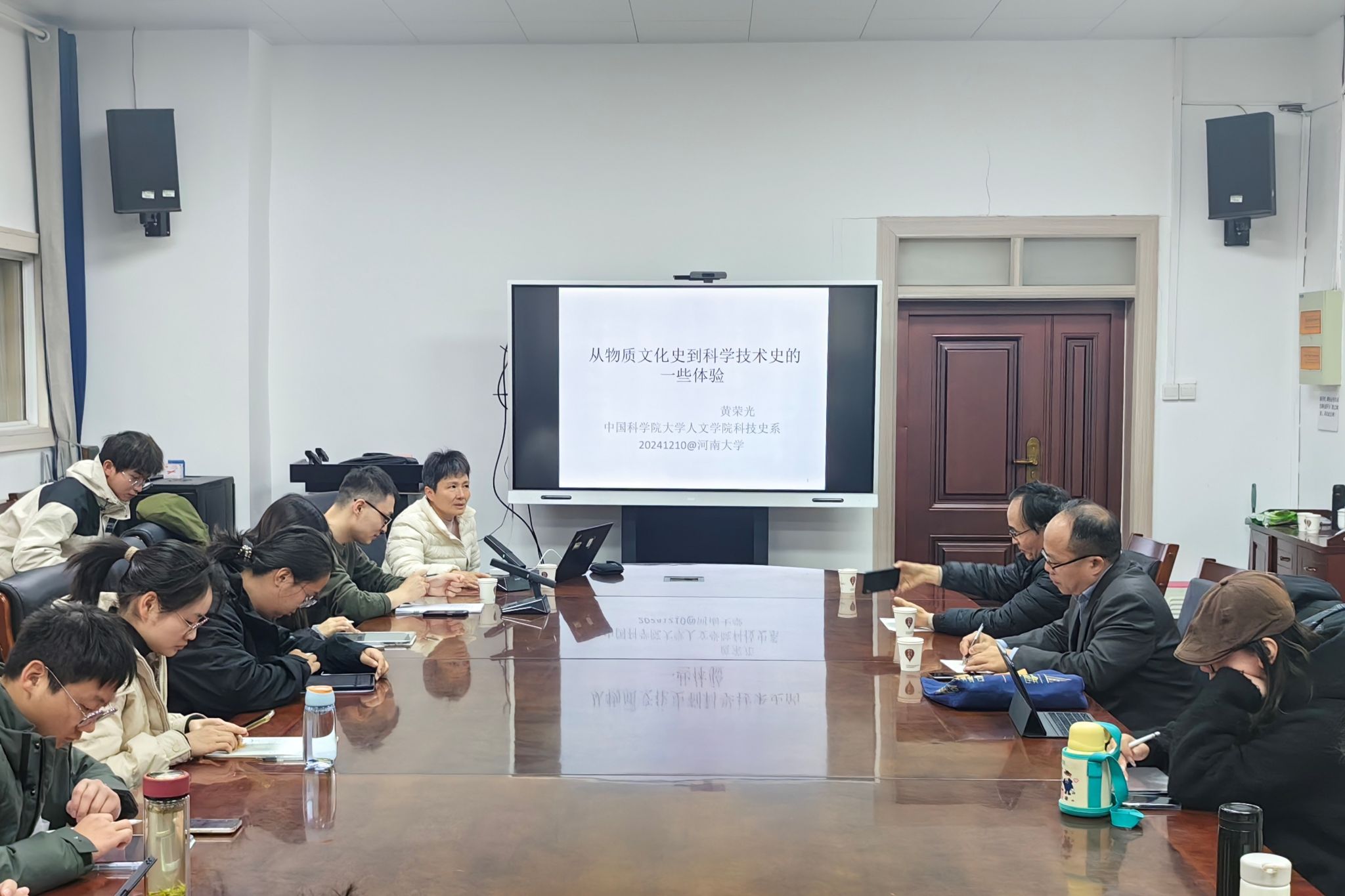 2024年12月10日上午,中国科学院大学人文学院教授、博士生导师黄荣光,受邀莅临河南大学历史文化学院做题为《从物质文化史到科学技术史的一些体验》的讲座。本场讲座由河南大学历史文化学院祁琛云教授主持。