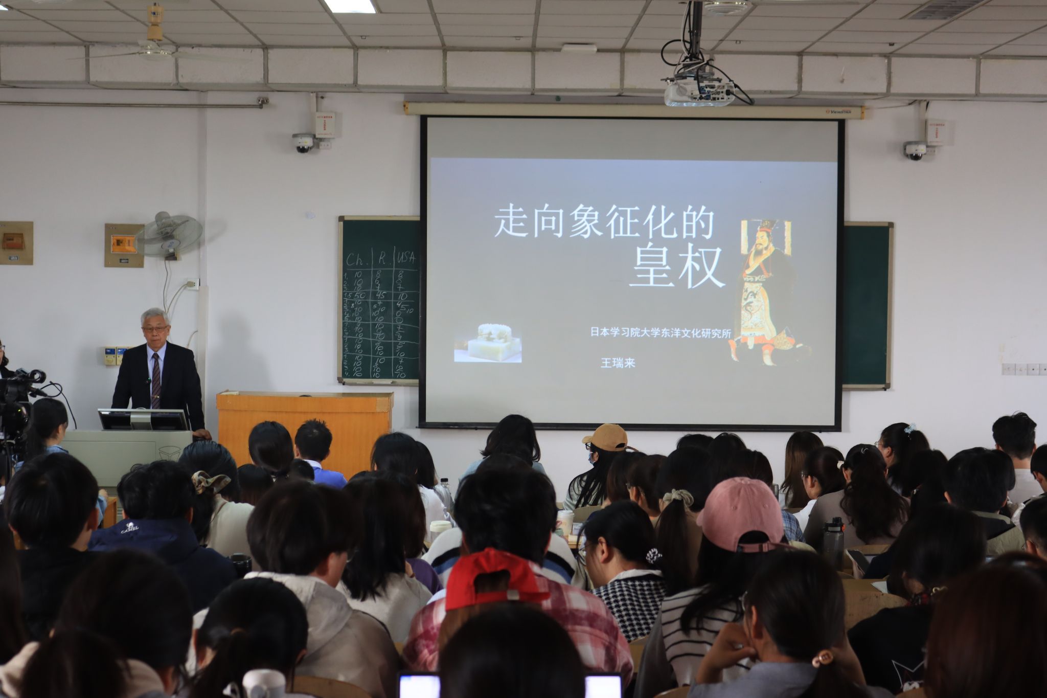 2025年3月24日上午,日本学习院大学东洋文化研究所研究员、河南大学讲座教授王瑞来受邀走进河南大学历史文化学院核心基础课程《中国古代史》的课堂,在河南大学明伦校区综合楼509教室为2024级历史学类本科生做题为《走向象征化的皇权》的讲座,本场讲座由历史文化学院马晓燕副教授主持。