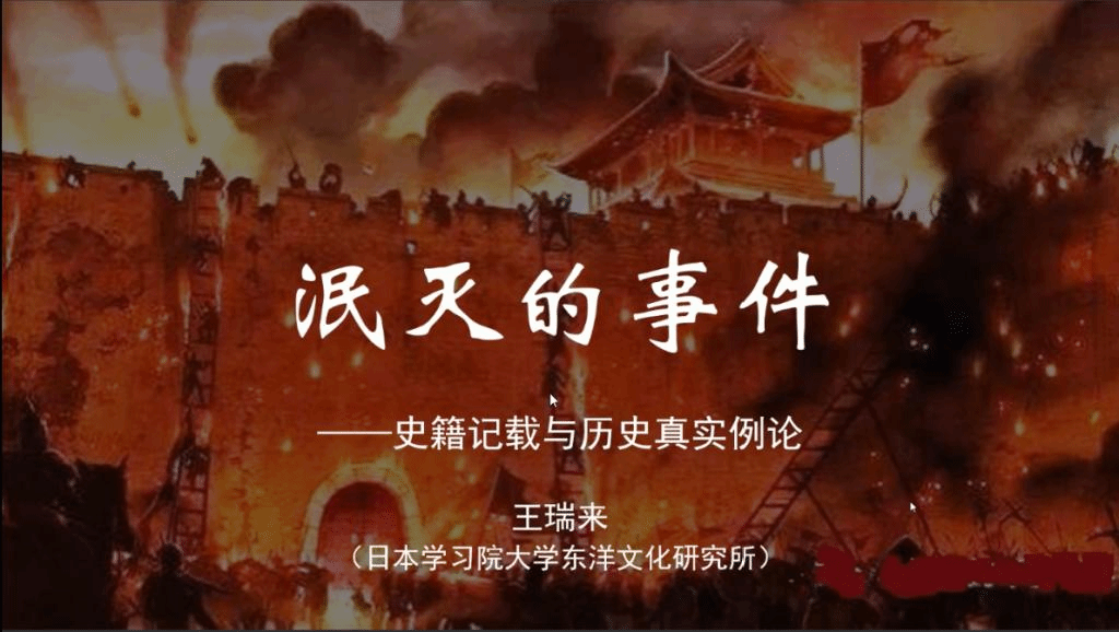 2023年3月12日晚上,日本学习院大学东洋文化研究所、我校讲座教授王瑞来研究员应邀在历史文化学院做题为《泯灭的事件——史籍记载与历史真实例论》的线上讲座。本场讲座由河南大学历史文化学院惠冬副教授主持。