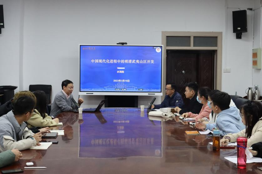 2023年3月18日上午,厦门大学历史与文化遗产学院教授、博士生导师、历史学系主任水海刚应邀在历史文化学院三楼会议室做题为《中国现代化进程中的明清武夷山区开发》的讲座。本场讲座由河南大学历史文化学院柳岳武教授主持。