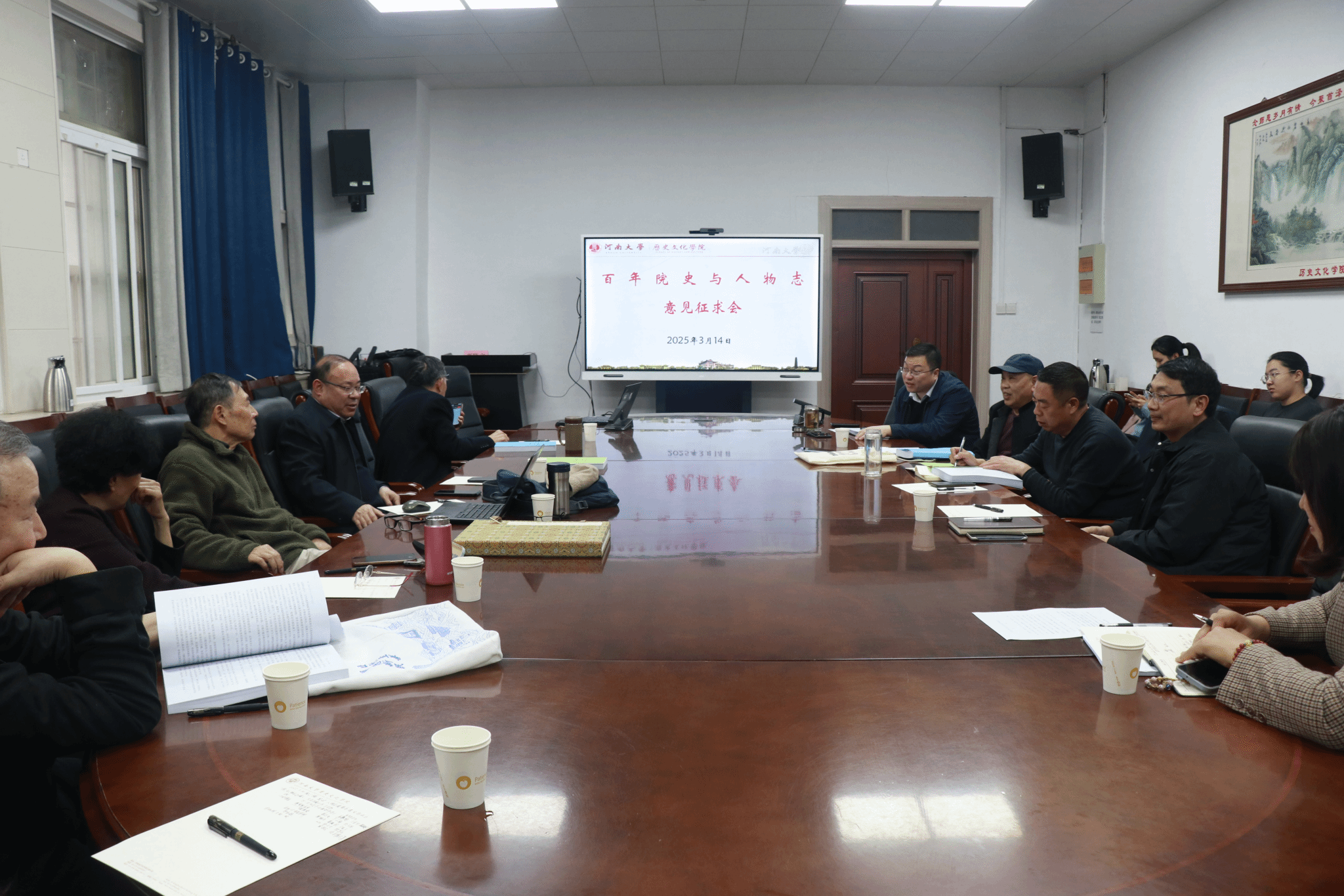 王明钦、马小泉、赵金康、刘波、陈宏宾、孔学、赵广军等就院史与人物志的编纂工作进行深入交流研讨。讨论认为,院史与人物志编撰初稿选用史料丰富详细,将院史与校史紧密结合,再现了学院百年发展历程与办学历史的源远流长;初稿仍需在细节之处多加打磨,修改工作要严格控制时间进度,为出版预留时间;史料加工与处理工作需严谨规范,符合学术要求,注意前后表述一致性;人物志初稿要查漏补缺,细致统一编纂与入选标准,合理控制篇幅;需在院庆前先行出版包含所有已故正教授级别教师的《人物志》,其余部分采取分卷编纂的方式持续推进。