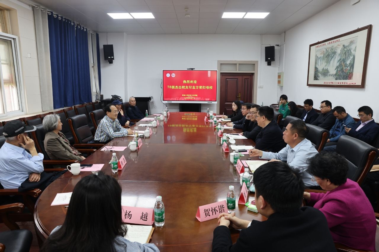 付志方在听取相关介绍后动情的表示,母校的快速发展令人倍感振奋,学院的影响力持续攀升,彰显出百年学府的蓬勃生机。回顾求学过往,他特别感谢恩师们的谆谆教诲,并对母校寄予诚挚祝愿,希望母校奋勇争先,期待青年学子传承河大精神,保持“铁塔牌”学子这张亮丽的名片。