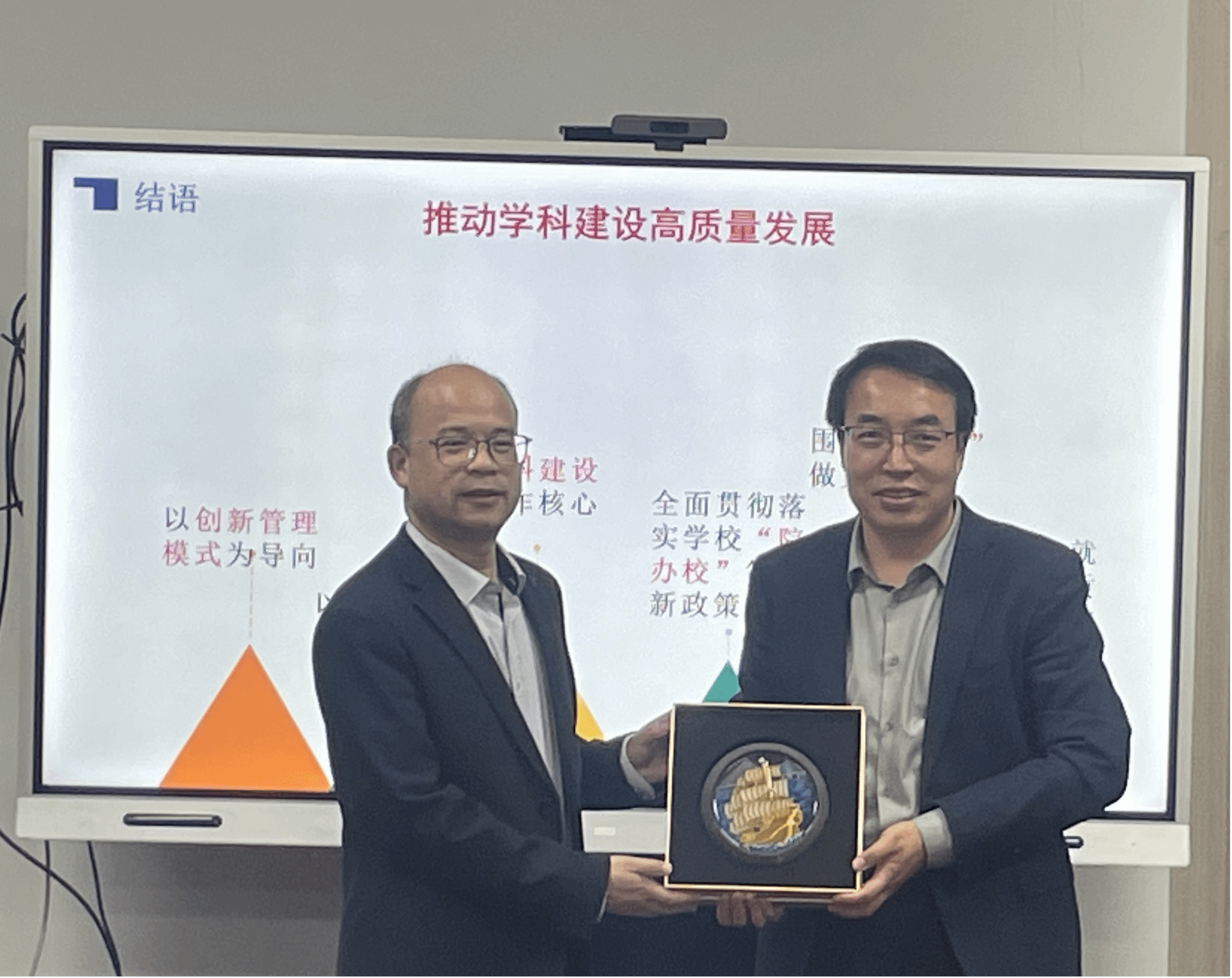 青年博士生进行交流,展现了学院的发展图景,表达了对青年才俊加入的期待。会后双方互赠礼物,并合影留念。