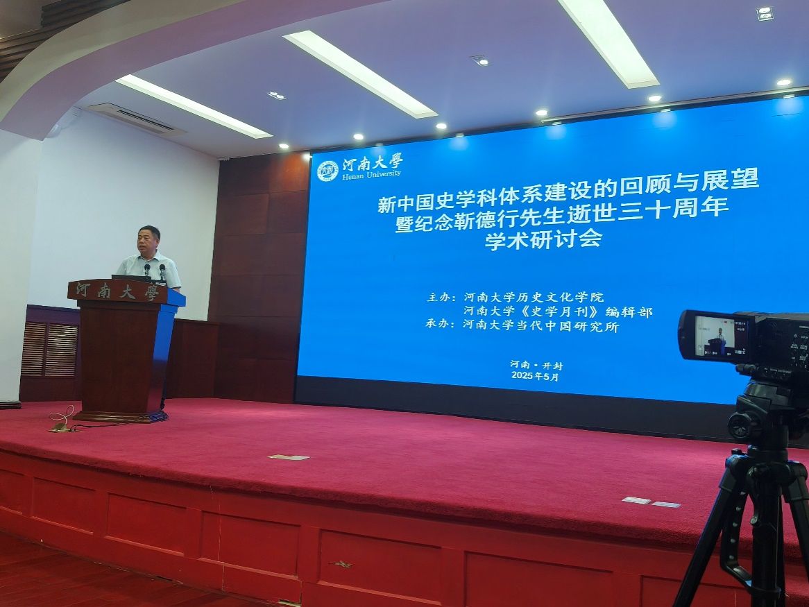 2025年5月16-17日,由河南大学历史文化学院、《史学月刊》编辑部联合主办,河南大学当代中国研究所承办的“新中国史学科体系建设的回顾与展望暨纪念靳德行先生逝世三十周年学术研讨会”在河南大学明伦校区小礼堂举行。来自中共中央党史和文献研究院、中共中央党校、中国社会科学院当代中国研究所和历史理论研究所、中国第二历史档案馆、南开大学、同济大学、郑州大学、河北师范大学、中共河南省委党校、河南师范大学、河南财经政法大学、信阳师范大学等单位的专家学者,以及河南大学知名校友、历史文化学院部分师生、靳德行先生家属与会。开幕式由河南大学历史文化学院党委书记张占党主持,河南大学副校长张礼刚教授,河南省历史学会会长、河南大学人文社科高等研究院院长张宝明教授,《史学月刊》主编苗书梅教授以及河南大学历史文化学院院长祁琛云教授分别致辞。