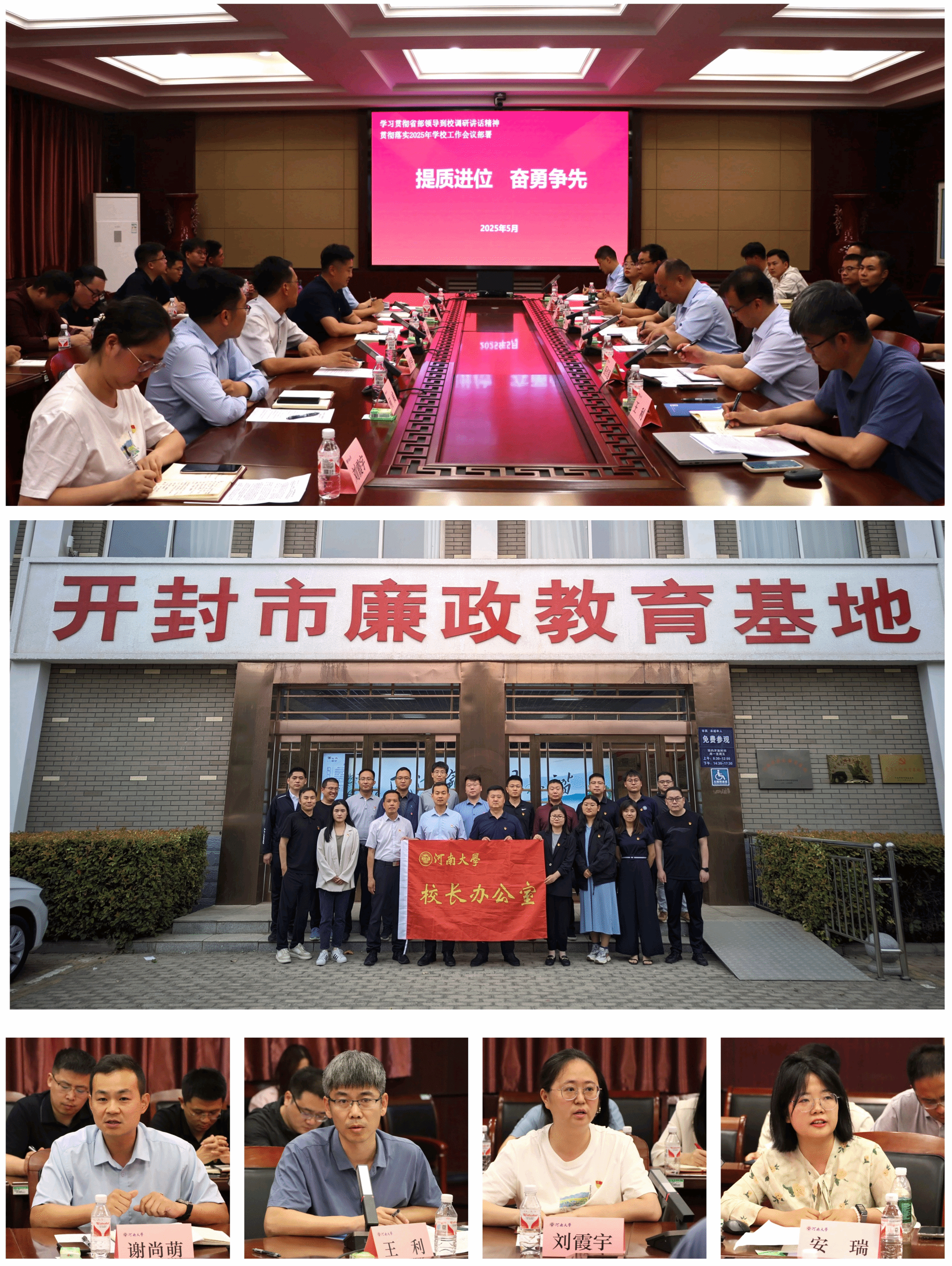 5月22日下午,校长办公室、学科建设处、法学院、历史文化学院联合举办“深化共建结对 赋能提质进位”主题党日活动,赴开封市廉政教育基地开展实地教学,并在明伦校区法学院第一会议室召开理论学习与专题研讨会议,深入领会习近平总书记考察河南时重要讲话精神,学习贯彻中央八项规定精神,传达学习部、省有关领导到校调研指示精神。来自四个部门的50余名党员代表参加活动。