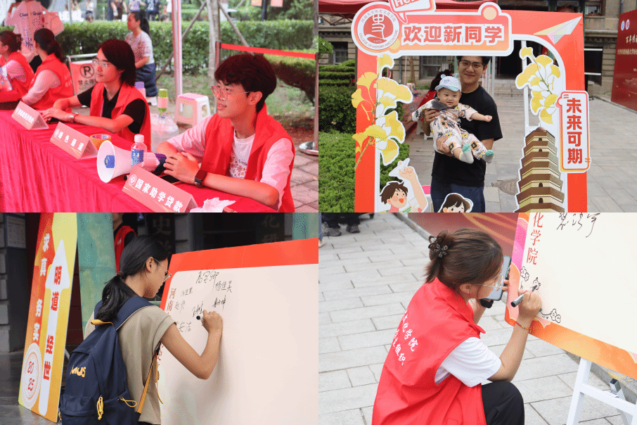 学院门口,“新生签名墙” 成为独特风景。新同学郑重签下姓名,这一笔一划,是与历史文化学院的初次 “契约”;与家人在门前合影,定格的不仅是喜悦的瞬间,更是迈向独立的珍贵起点,将牵挂与期许,融入这帧温暖画面。