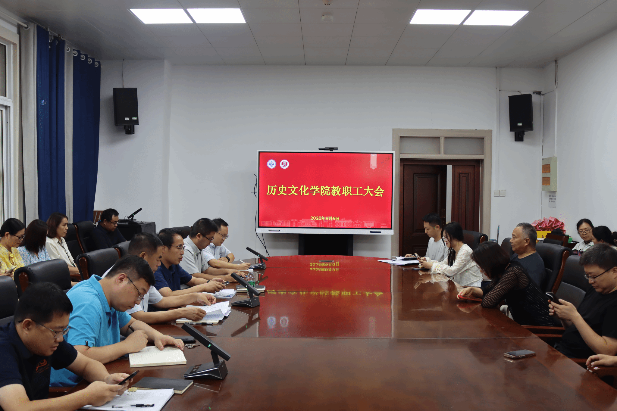 9月9日下午,历史文化学院在院三楼会议室召开全体教职工大会,传达学校暑期发展战略研讨会会议精神,安排部署新学期工作,学院全体教职工参加会议。大会由学院副院长陈升远主持。