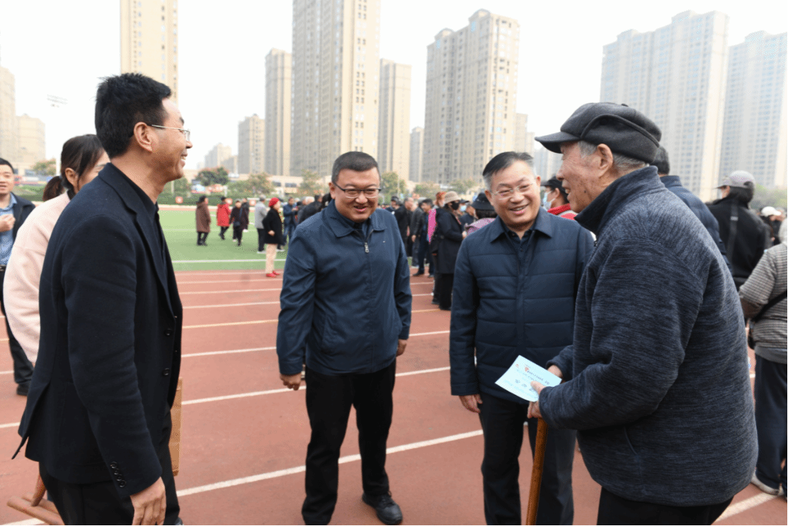 “深秋骄阳暖人心,银龄健儿展风采。”10月23日下午,“爱在重阳 趣享运动 拥抱健康”河南大学2025年离退休教职工趣味运动会在金明校区志义体育场举行。校党委副书记李平和相关部门负责人出席开幕式。历史文化学院党委书记张占党和党委副书记周文凯到现场为老教师们加油鼓劲,送去学院的关怀与温暖。