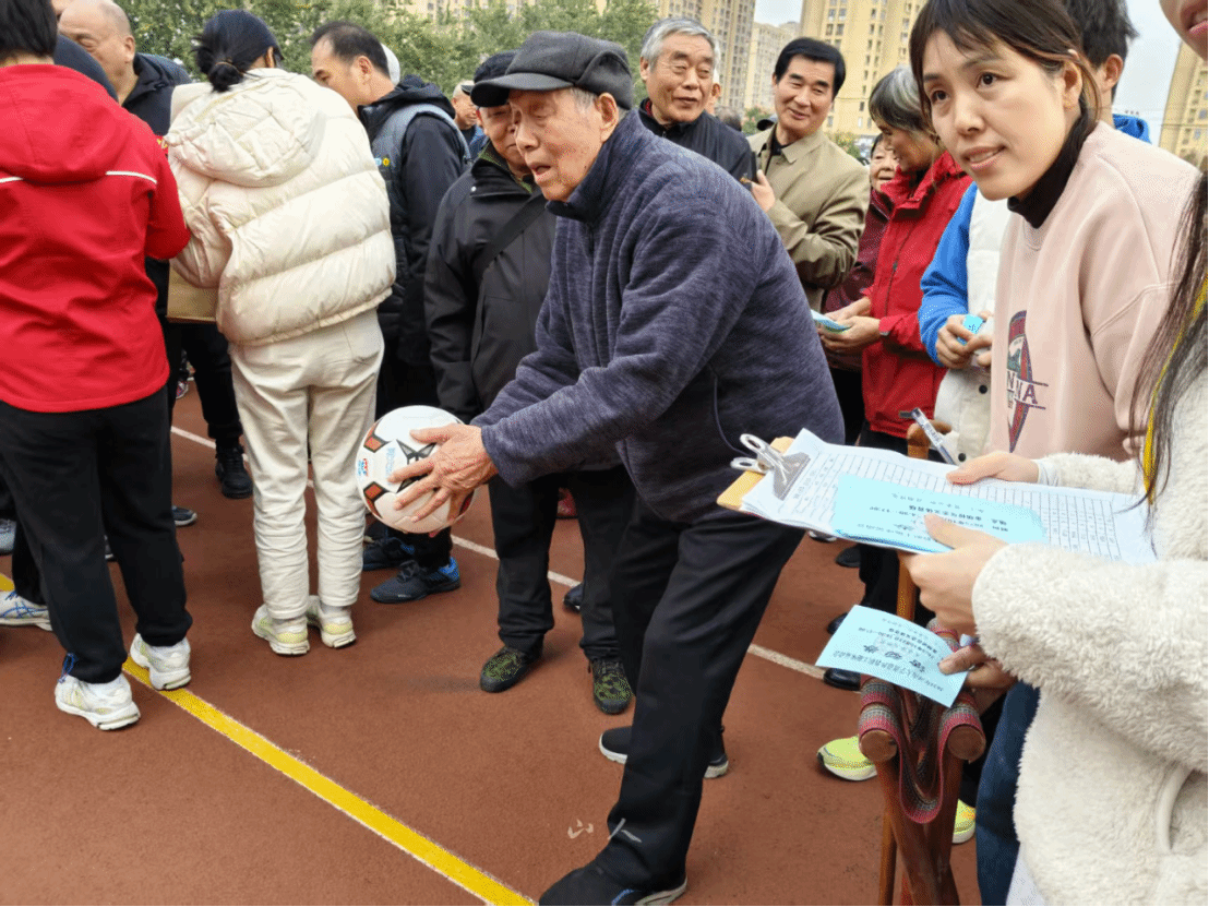 运动场上,历史文化学院老教授们精神矍铄,沐浴着秋日的暖阳。历史文化学院离退休教职工积极参加保龄足球,投掷羽毛球等项目,充分展现我校全民健身计划的成果。比赛的同时,学生志愿者们也在运动场上穿梭,为银龄健儿们提供无微不至的照顾,在与老教师们的互动中聆听河大故事,传递河大精神。