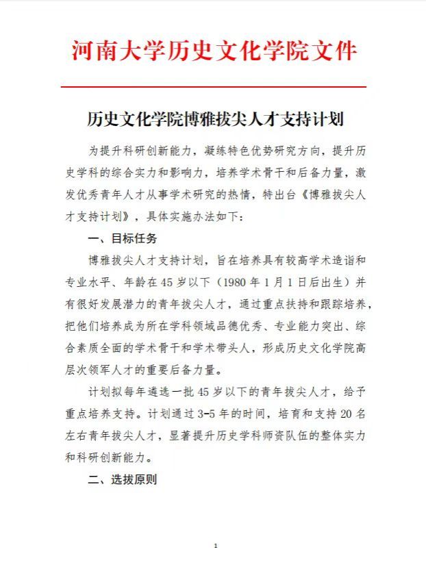 博雅拔尖人才支持计划,每年为入选者提供专项科研经费,旨在将具有较高学术造诣和专业水平、年龄在45岁以下并有很好发展潜力的青年拔尖人才,培养成为所在学科领域品德优秀、专业能力突出、综合素质全面的学术骨干和学术带头人,形成历史文化学院高层次领军人才的重要后备力量。