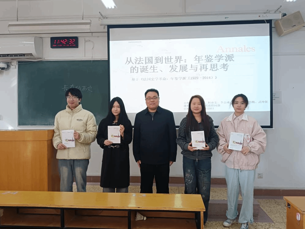 在读书会的最后环节,杨磊向本次读书会每组代表同学赠送了本次阅读的书籍。通过读书交流会活动,世界史实验班同学们加深了对法国年鉴学派的认识,培养了跨学科方法论和史学思维。在老师的引导与同学们的积极参与下,大家深化了对世界史研究方法与学术思想的理解,为后续系列学术活动的开展积累了宝贵经验,也为河南大学世界史学科的人才培养与学术建设注入了持续动力。