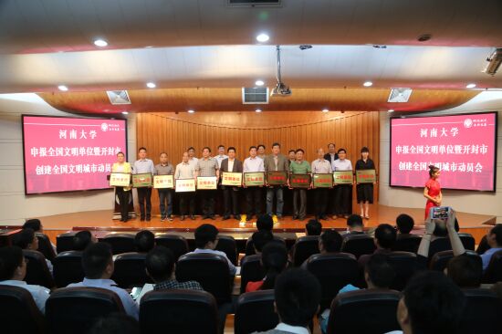 5月5日下午,我校申报全国文明单位暨开封市创建全国文明城市动员会在金明校区行政楼二楼报告厅举行。学院荣获2016年度河南大学文明单位。同时,龚留柱、李恒、谢宇飞老师荣获2016年度河南大学文明教工;学院2015级历史学2班荣获2016年度河南大学文明班级;周毅、李琳、何春林、刘权同学荣获2016年度河南大学文明学生。