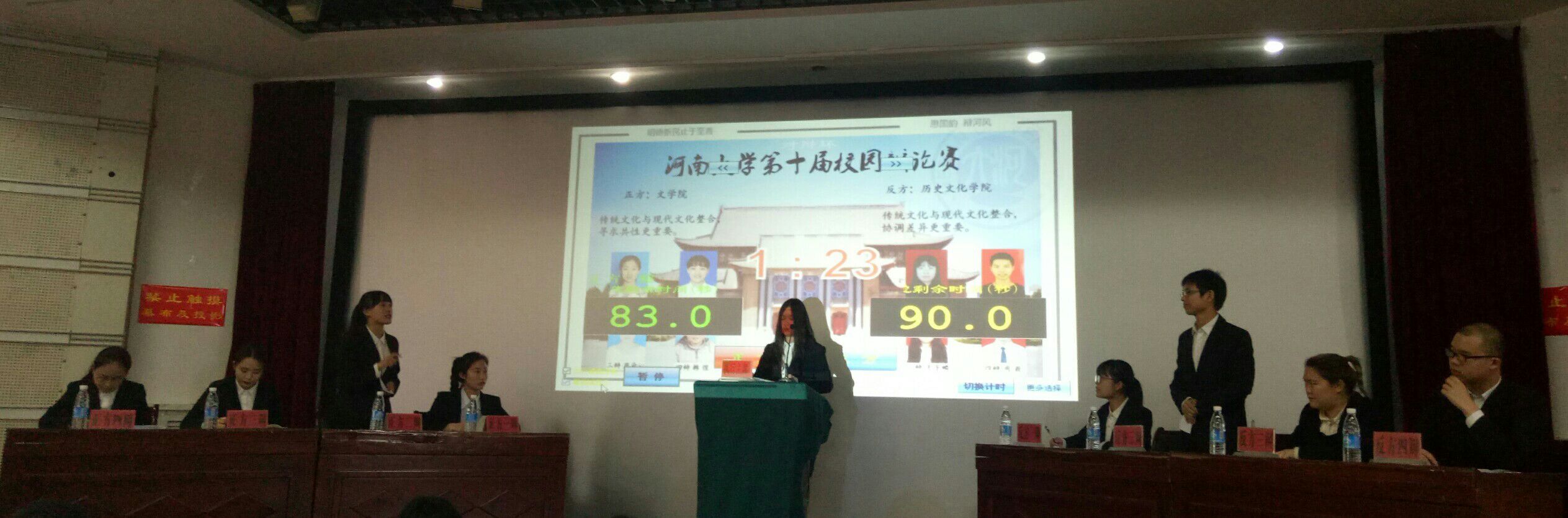 唇枪舌战,辩赛场硝烟;口若悬河,理是非曲直。4月23日上午,河南大学第十届校园辩论赛明伦校区决赛在明伦校区科技馆二楼顺利举行。校团委、部分院系团委负责人出席比赛。历史文化学院代表队夺得明伦校区冠军。
