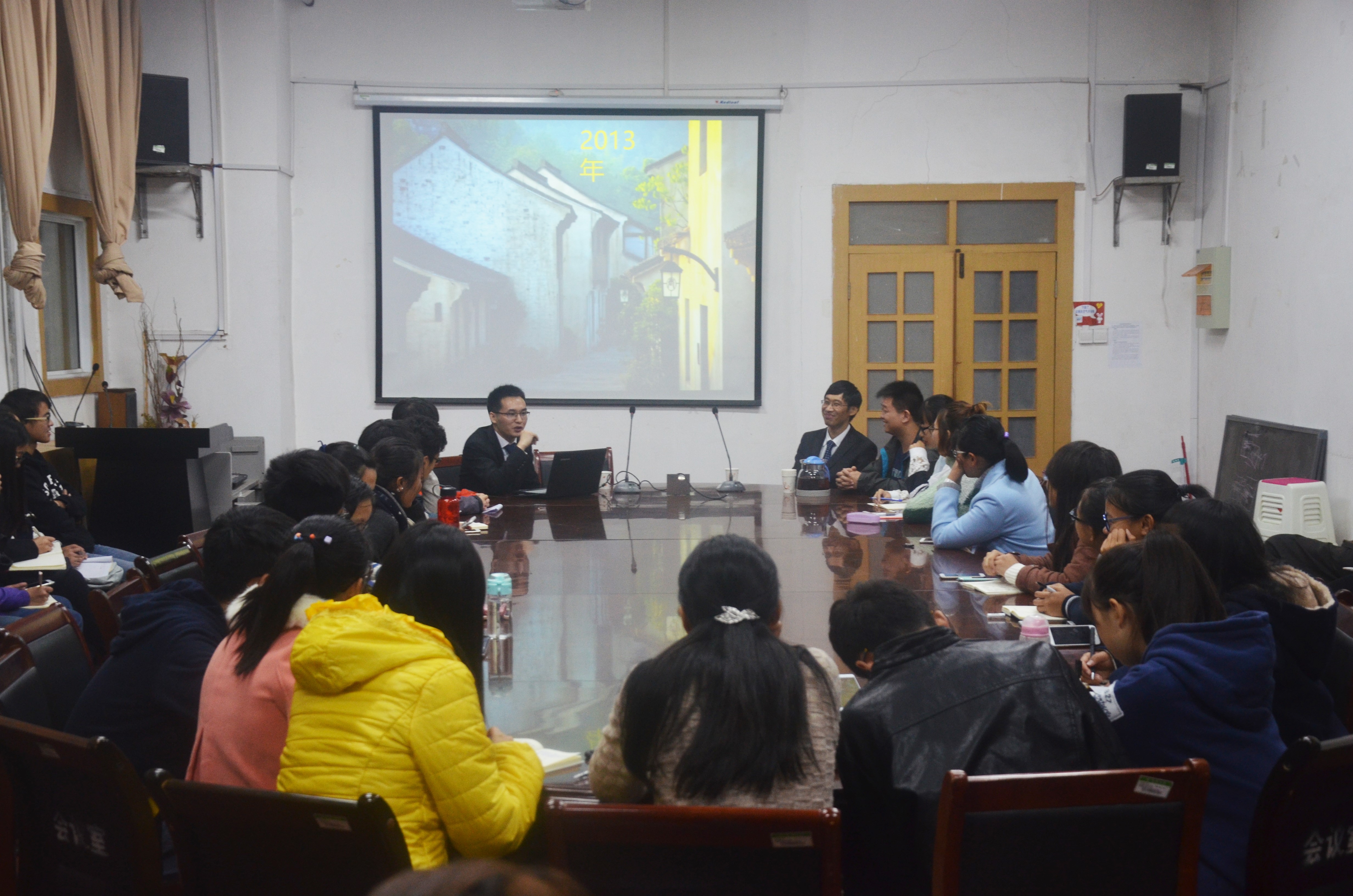 10月24日20:00,旅游管理专业系列活动——酒店高管进课堂在学院三楼会议室举行,宜兴氿州开元名都大酒店人力资源部总监、我院2013届毕业生朱项磊应邀回母校交流。本次活动由张野博士主持,上海松江开元名都大酒店人力资源部总监许丹、湖州东吴开元名都大酒店人力资源部总监韩琴等出席本次活动,酒店管理教研室主任宋军令副教授做总结发言。