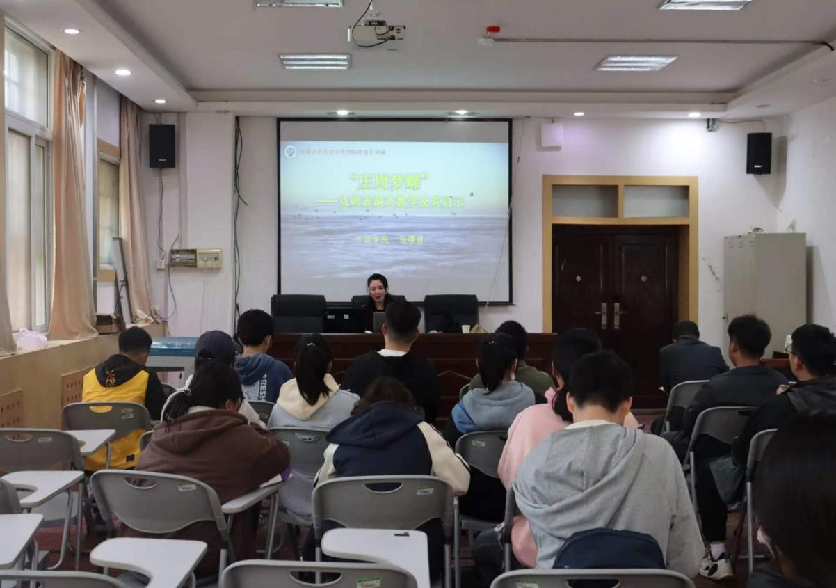 为提高师范生的教学技能,增强师范生的实践能力,促进我院师范专业人才培养,4月6日下午,河南大学外语学院教授、博士生导师张璟慧应邀在历史文化学院二楼会议室做题为《“庄周梦蝶”:戏剧表演式教学及其启示》的讲座。此次讲座是“文澜”师范教育课堂第一讲,由历史文化学院闵祥鹏教授主持。