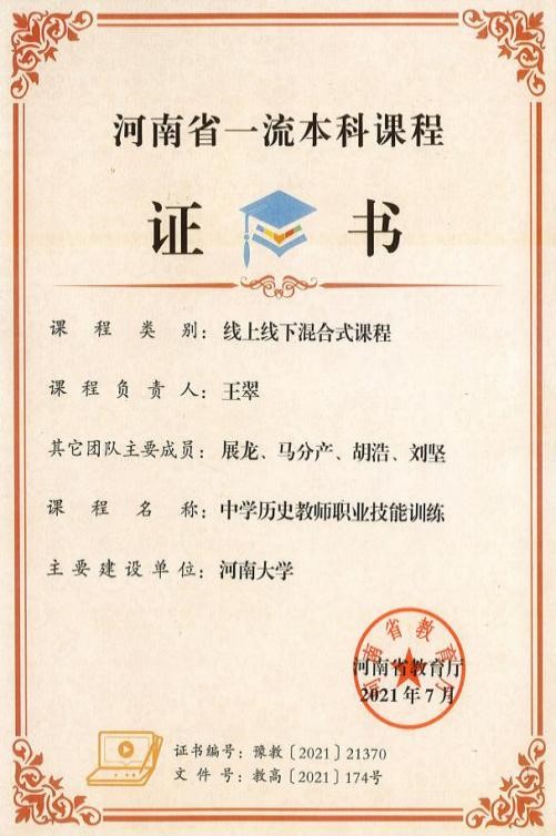王翠老师长期从事历史课程与教学论研究,兼治世界近现代史、中外礼俗文化,注重教学改革和课程建设研究,取得有多项教学成果。曾两次获得省级教学竞赛“一等奖”,获“河南省教学标兵”称号;不久前,其主讲的课程中有两门获得省级一流课程,其中,通识课《社交礼仪》评为河南省首批“线下一流课程”,师范专业课《中学历史教师职业技能训练》评为河南省“线上线下混合式课程”;王翠老师多年指导本、硕生参加国家及省级教学技能比赛,多次荣获“优秀指导教师”称号。