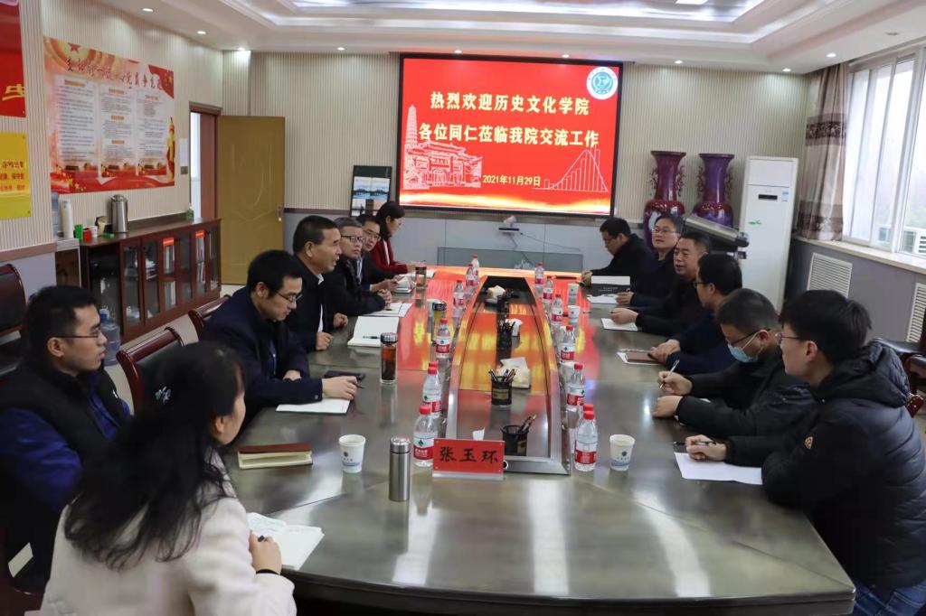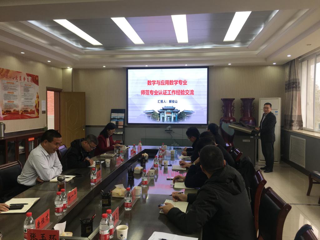 为更好推动历史学师范专业认证工作, 2021年11月29日上午,历史文化学院党委书记张占党、院长祁琛云、副院长魏继印和相关专业负责人及教研室主任一行6人赴数学与统计学院学习交流师范专业认证工作。活动分座谈交流和现场考察两部分。