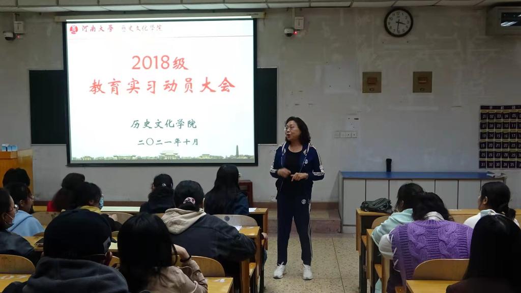 百年大计,教育为本;教育大计,教师为本。历史文化学院高度重视历史学专业的建设和发展,注重学思结合,努力推动教师教育课程学习和实践育人工作取得新成效。本次教育实习从开学初筹备至学生回讲、考核,累积时间18周,参与毕业生有130人、校内指导教师13人,分别到河南大学附属中学、金明中学、开封市第七中学等7所中学(部)进行实习。
