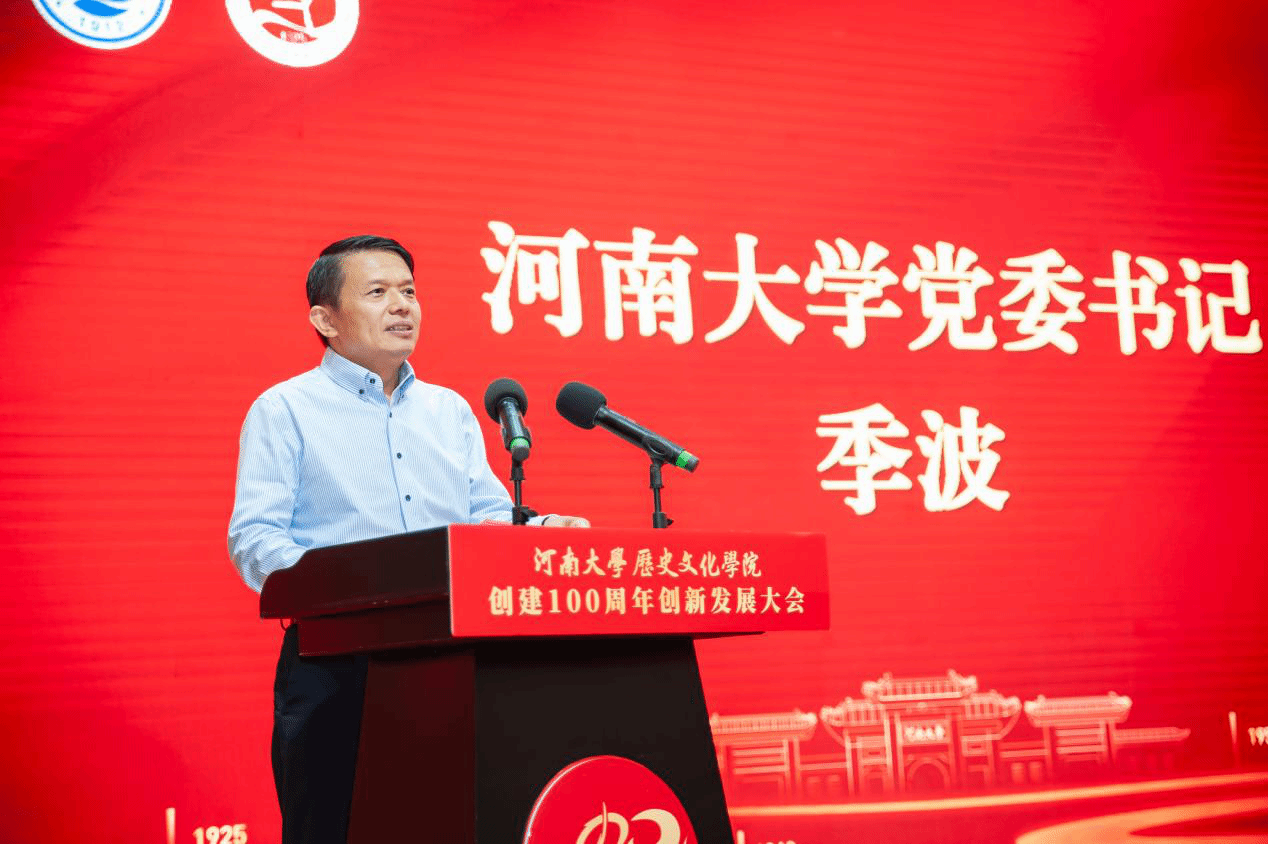 季波书记代表学校对历史文化学院建院一百周年表示热烈祝贺,对社会各界的支持表示衷心感谢。他指出,历史文化学院历史悠久、底蕴深厚,创立一百年来秉持为党育人、为国育才初心使命,坚守求真问道、革故鼎新学术追求,延续明道经世、务实致用现实关怀,在学科建设、人才培养、学术研究等各方面取得了令人瞩目的办学成就,呈现出强劲的发展态势。面向未来,他强调河南大学正在展现出不可逆转的振兴之势,围绕“研究型、综合性、国际化”的世界一流大学新定位,践行“思国家需、做国家事、入国家队”的办学新思路,贯彻“强理振文、新工新医”的发展主线,全力以赴推进改革、激发活力、破除积弊、开拓新局,实现了一系列具有里程碑意义的突破。希望历史文化学院在新的一百年:一是坚持党建引领,奋力开创学院与学科高质量建设的新局面;二是坚定瞄准筑峰学科目标,全力推动中国史一流学科建设实现新突破;三是传承前辈学者的高尚品德和治学精神,培育底蕴深厚、品格卓越的一流学院文化;四是持续造就爱党爱国、本领过硬、可堪大用、能担重任的时代栋梁。