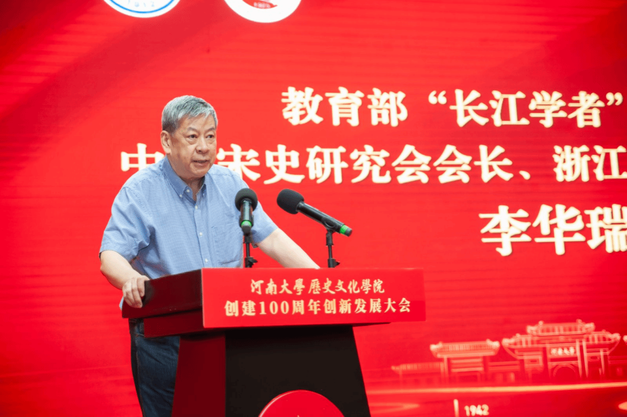 李华瑞教授代表宋史研究会向学院百年华诞表示祝贺,他提到自建院以来学院在宋史研究领域积淀深厚,涌现出一大批杰出学者,成为国际宋史研究重镇之一,为宋史研究做出了不可磨灭的重要贡献。